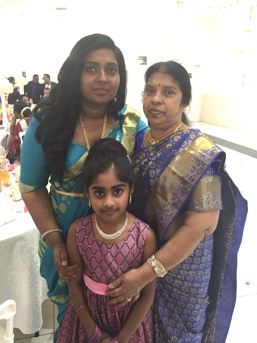 றெமி, லேயா, அஷ்வின், ஷெர்லின், அனலின் ஆகியோரின் அன்புப் பேத்தியும் ஆவார்.