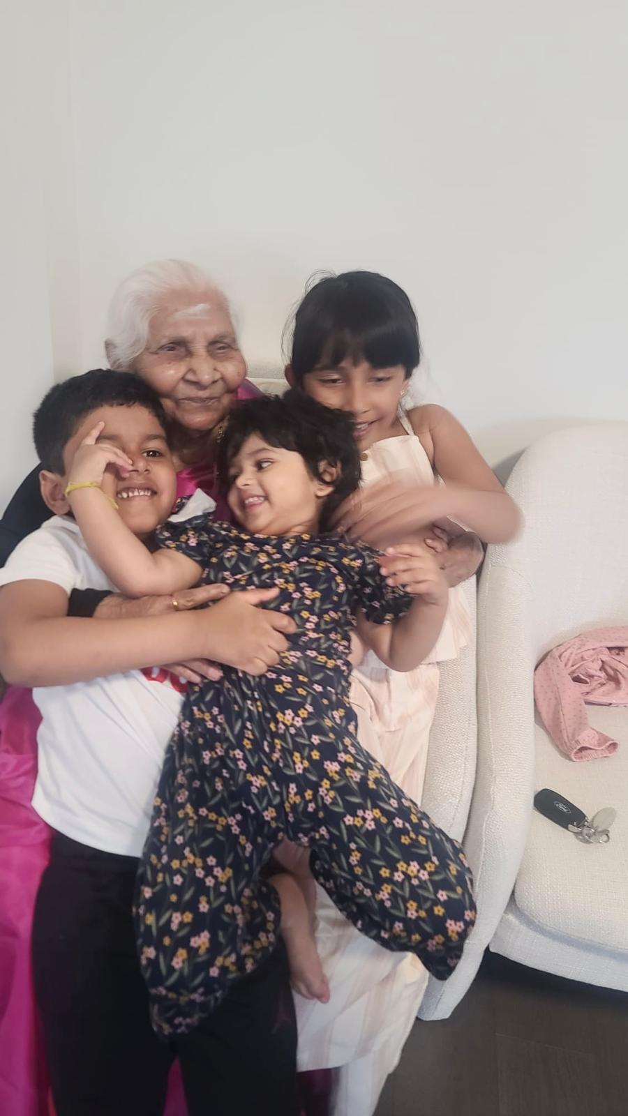 ரம்யானந்தா - தீபா, கிருபானந்தா - தர்ஷிகா, கௌதமி - லக்ஷ்மண், ஹரிதர்ஷன் - நித்தியா, அரிஸ்ரன் - உஷானி, சாதனா, ஷாருஜன், சஞ்ஜே, ஷமீரா, நிரேஷ், அதிதி ஆகியோரின் அருமைப் பேத்தியும்,