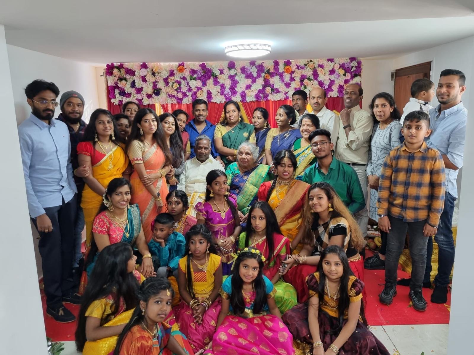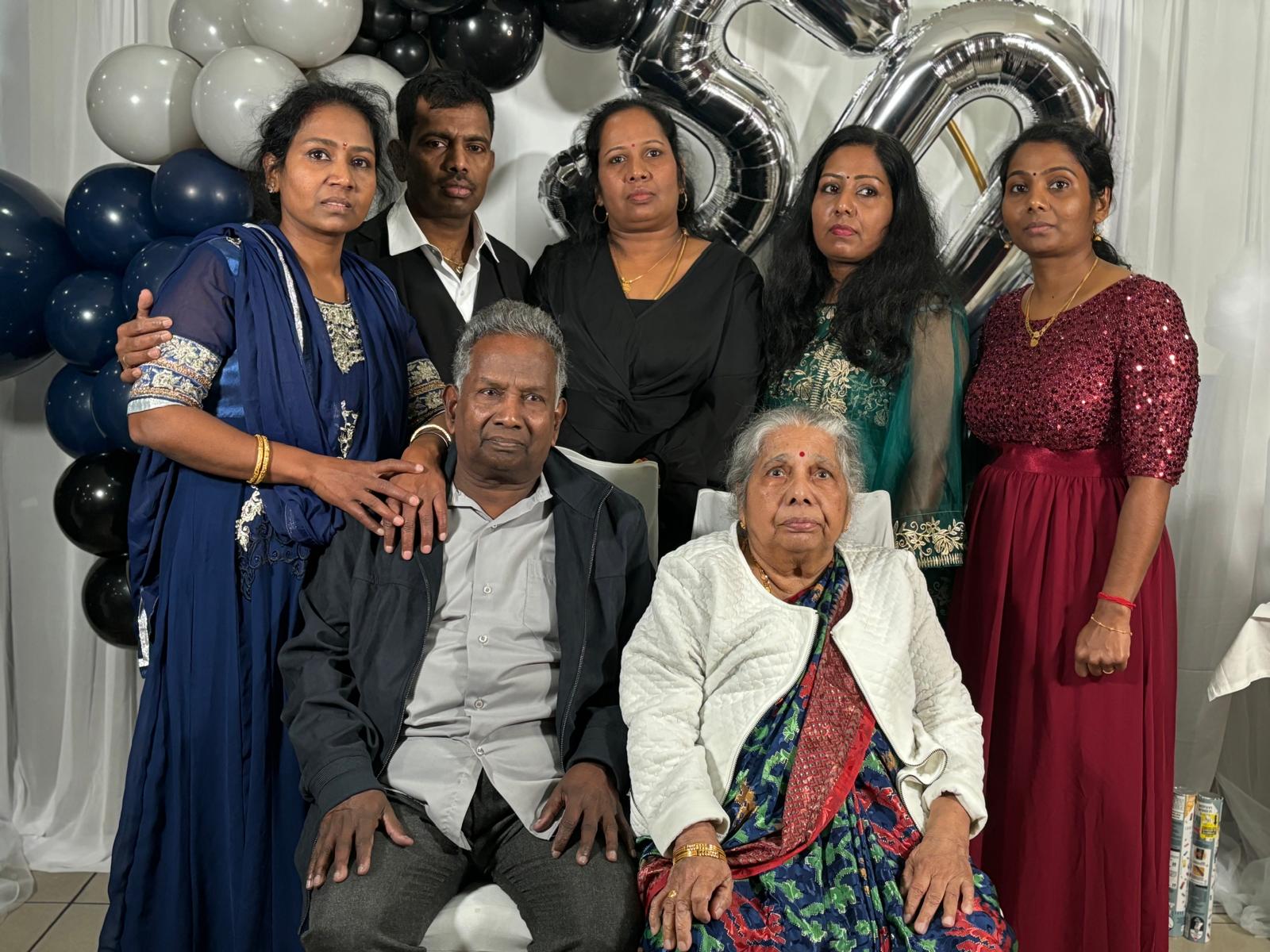 துசானி, சுவேதா, சஞ்சீவ், கர்ஷா, தேவினி, கபிலாசா, சானுஜா, சயூரி, காரணி, லாவணி, சயனி, சயை ஆகியோரின் அன்புப் பேத்தியும் ஆவார்.