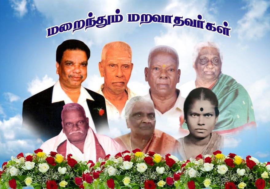 மதிவதனன்(மதி - பாரத் உணவகம்), மதிவதனி(செல்வி), மகிந்தன், சுலோசனா, சுஜித்தா(சுஜி) ஆகியோரின் பேரன்புமிகு தாயாரும்,
