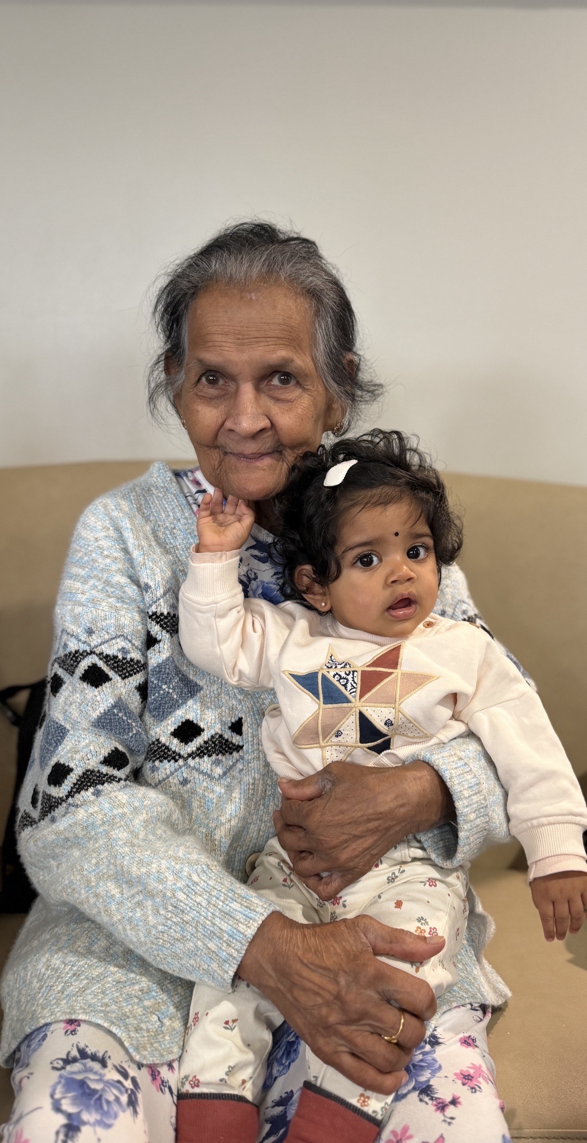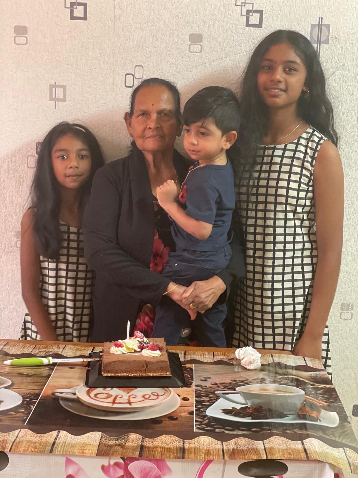 விஷ்வா, லியானா, எவானா, அய்டன், கயல், தமயா ஆகியோரின் அன்புப் பூட்டியும் ஆவார்.