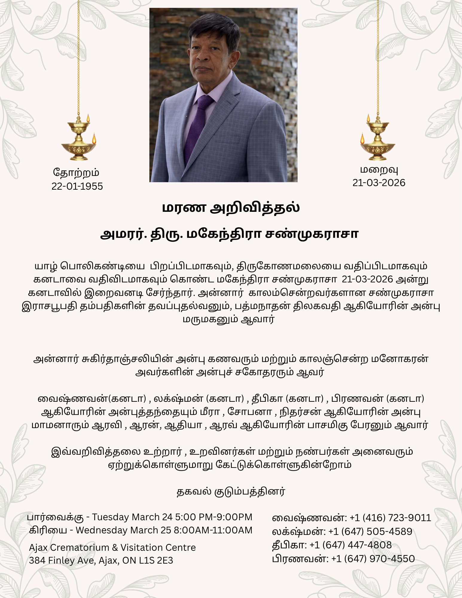 மறைவு 21 MAR 2026