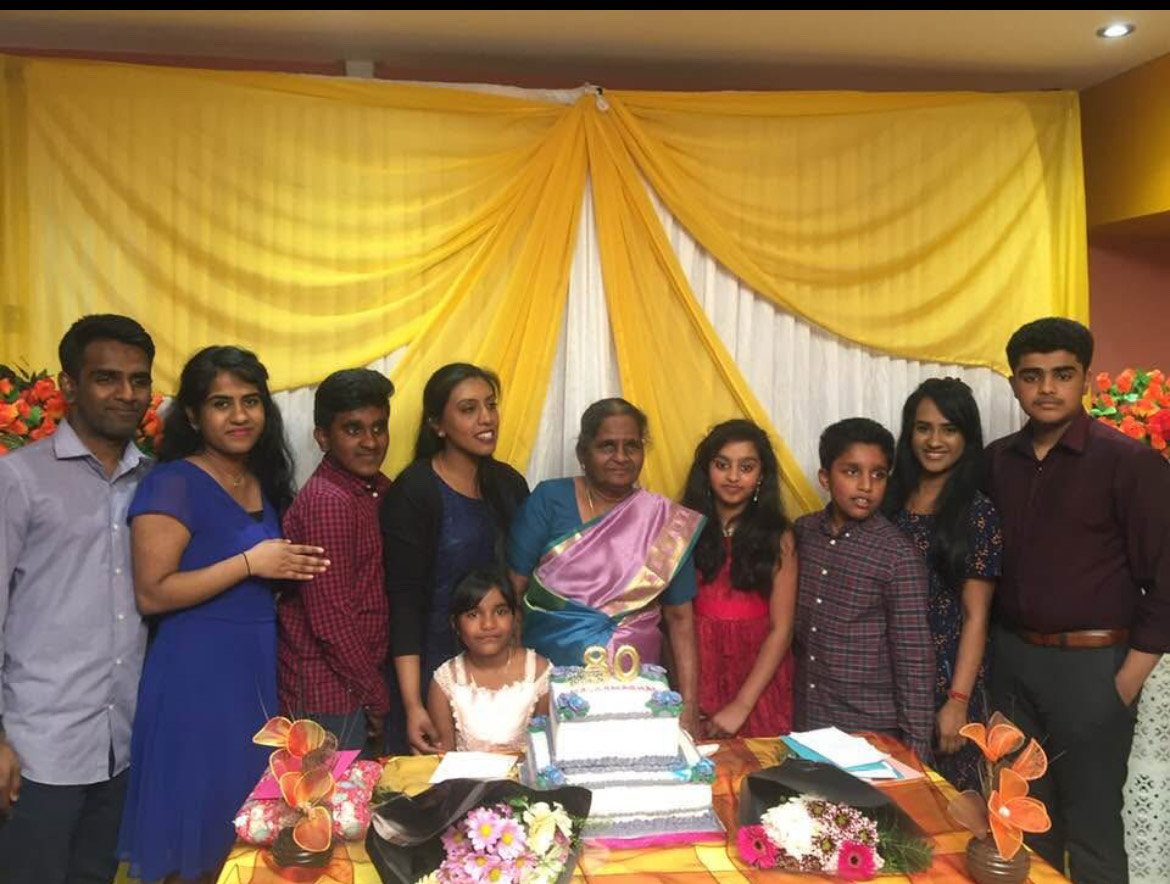 சஸ்வின், அகஸ்தியன், அயானா, அகன், ஷாருக், அனீஷ், கிஷாணன், அக்ஷான், அணன்யா, ஆர்த்தி, அஷானி, ரித்விக், யாத்ரா, பைரா, ருத்திரா ஆகியோரின் அன்புப் பூட்டியும் ஆவார்.