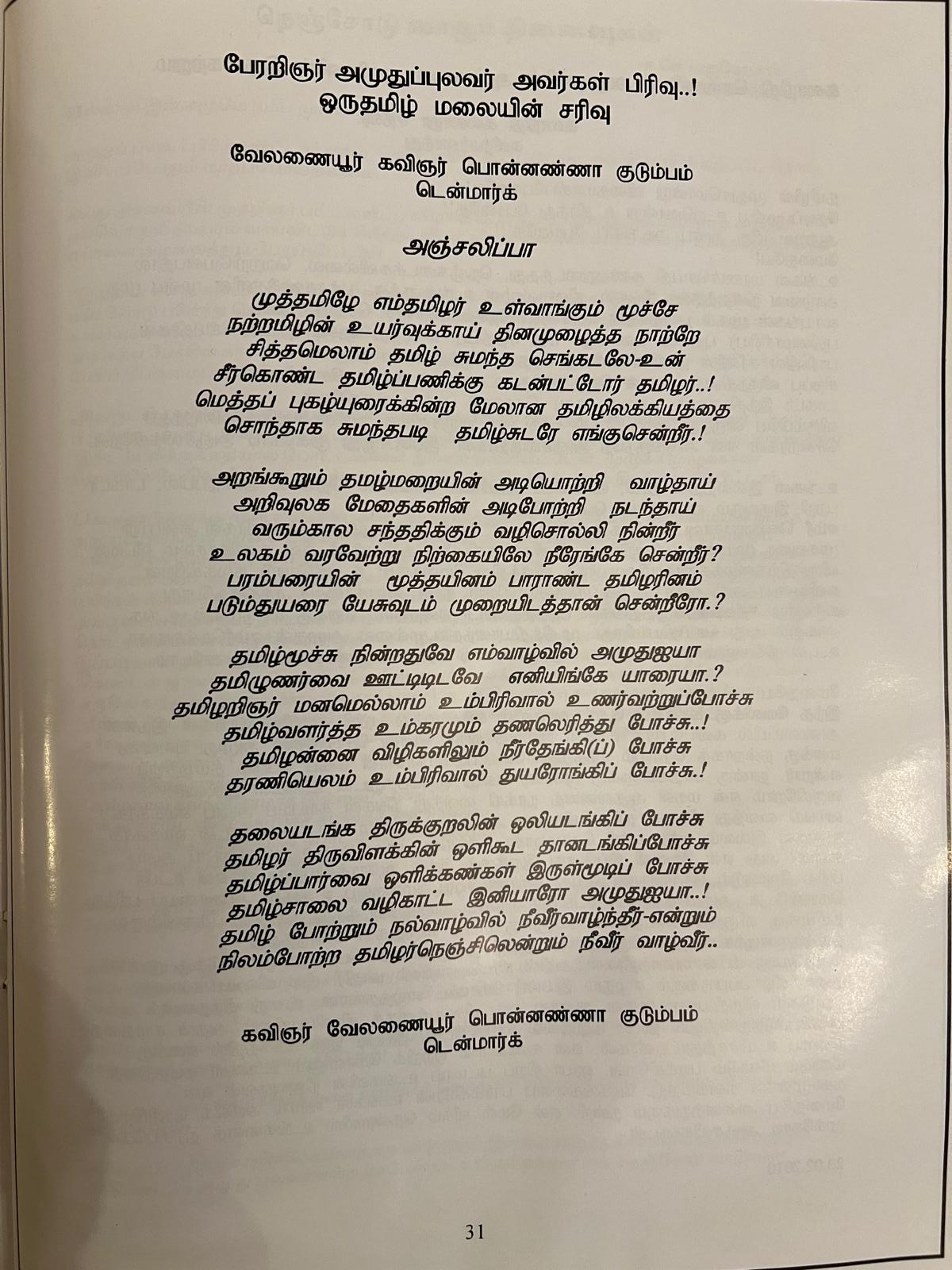 நெடுந்தீவு உதயபதியைப் பிறப்பிடமாகவும் லண்டனில் வசித்துவந்தவருமான "அமுதுப்புலவர்" எனத் தமிழ்கூறும் நல்லுலகில் இனிதே அறியப்பெற்ற செவாலியர் கலாநிதி சவரிமுத்து அடைக்கலமுத்து அவர்களின் 16ம் ஆண்டு நினைவஞ்சலி.
